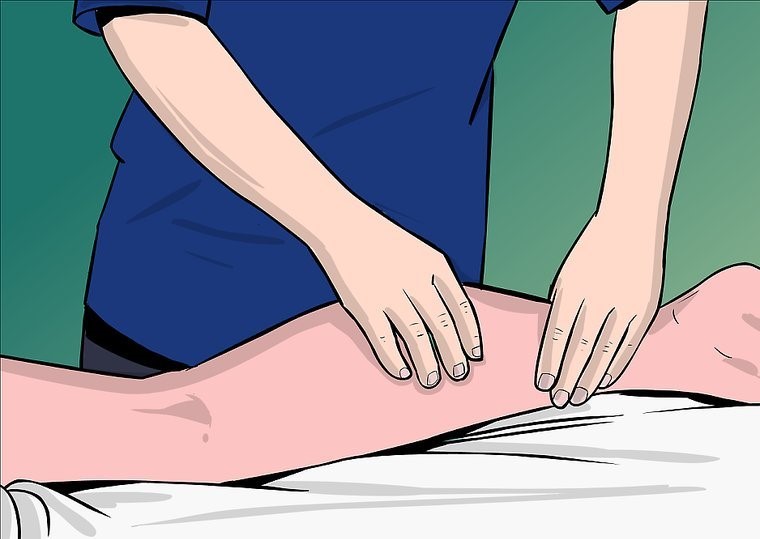 از هر دو دست برای تشکیل دایره در اطراف مناطق بالاتر بازو استفاده کنید. عضلات بازو را با کف دست و انگشتانتان مانند خمیر ورز دهید؛ کارتان را رو به پایین به طرف مچ ها ادامه دهید. این کار را با بازوی مخالف تکرار کنید؛ سپس روی پاها کار کنید. از ران ها شروع کرده و عضلات را تا زمانی که به قوزک ها برسید؛ بمالید.